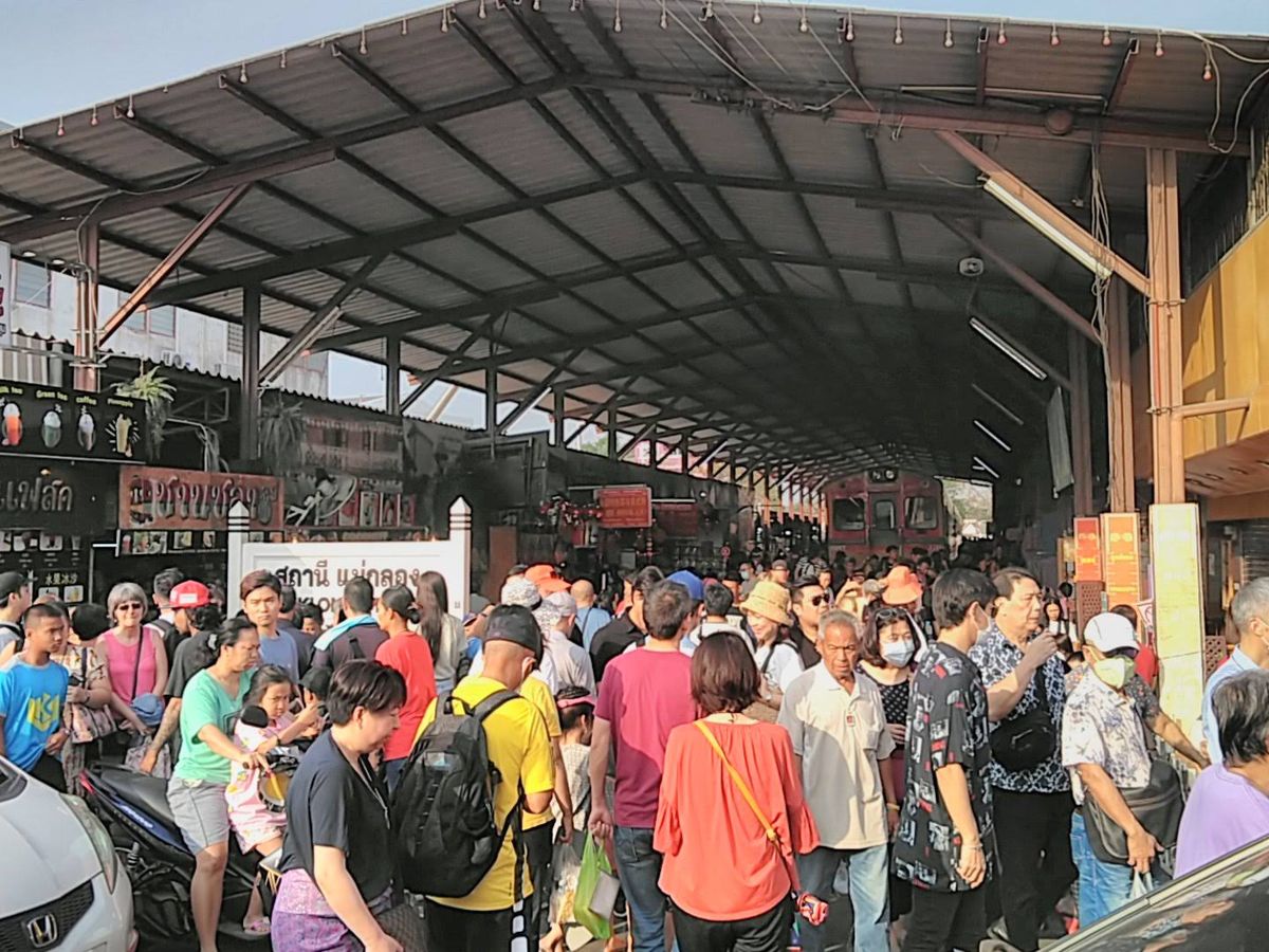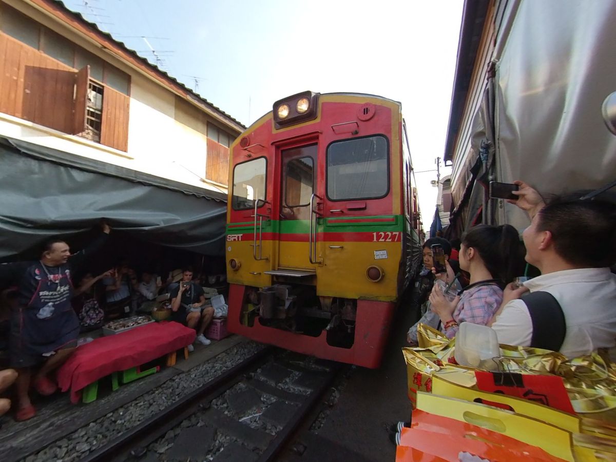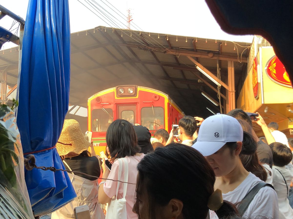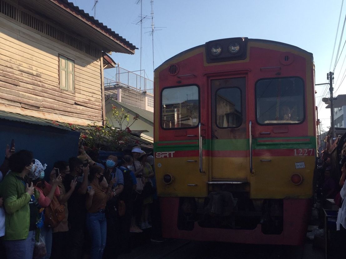 メークロンでは、電車が駅に到着するところに立ち会えます。