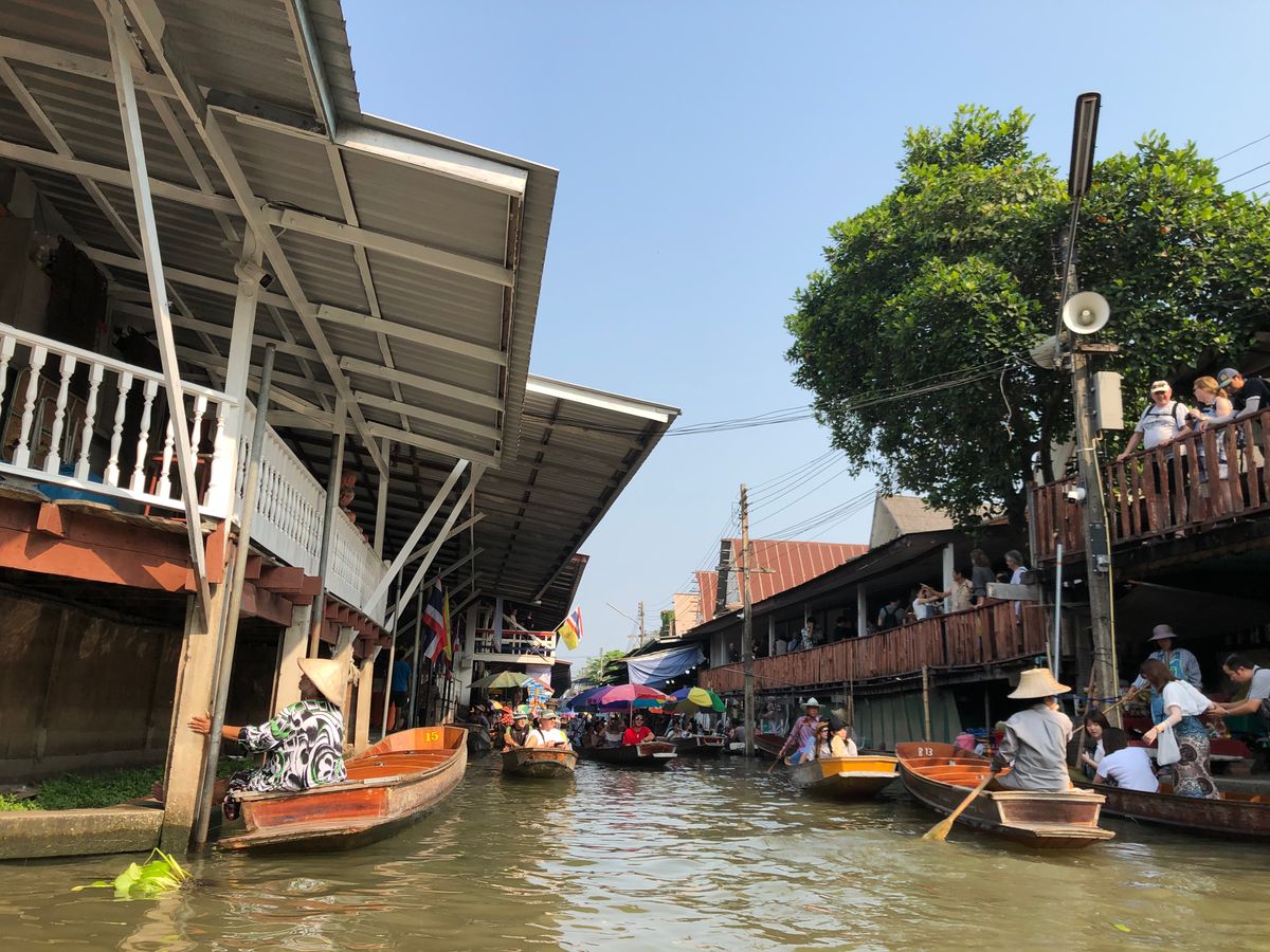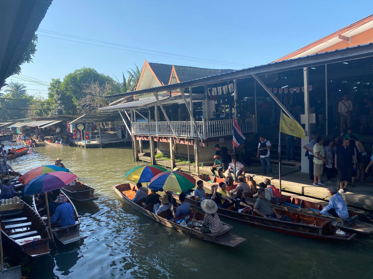 メークロン市場では人が多い中でも良い場所を確保できて、迫力満点な写真と映像が撮れましたし、市場にあった10Bのモンキーバナナがとっても美味しかったです。水上マーケットではボートが混みすぎてて前に進まず、バックしてもらって戻りました。それでもココナッツアイスを食べたり手漕ぎボートを体験して十分楽しかったです。ランチのヌードルもすごく美味しくて、朝早くても参加して本当に良かったと思いました!