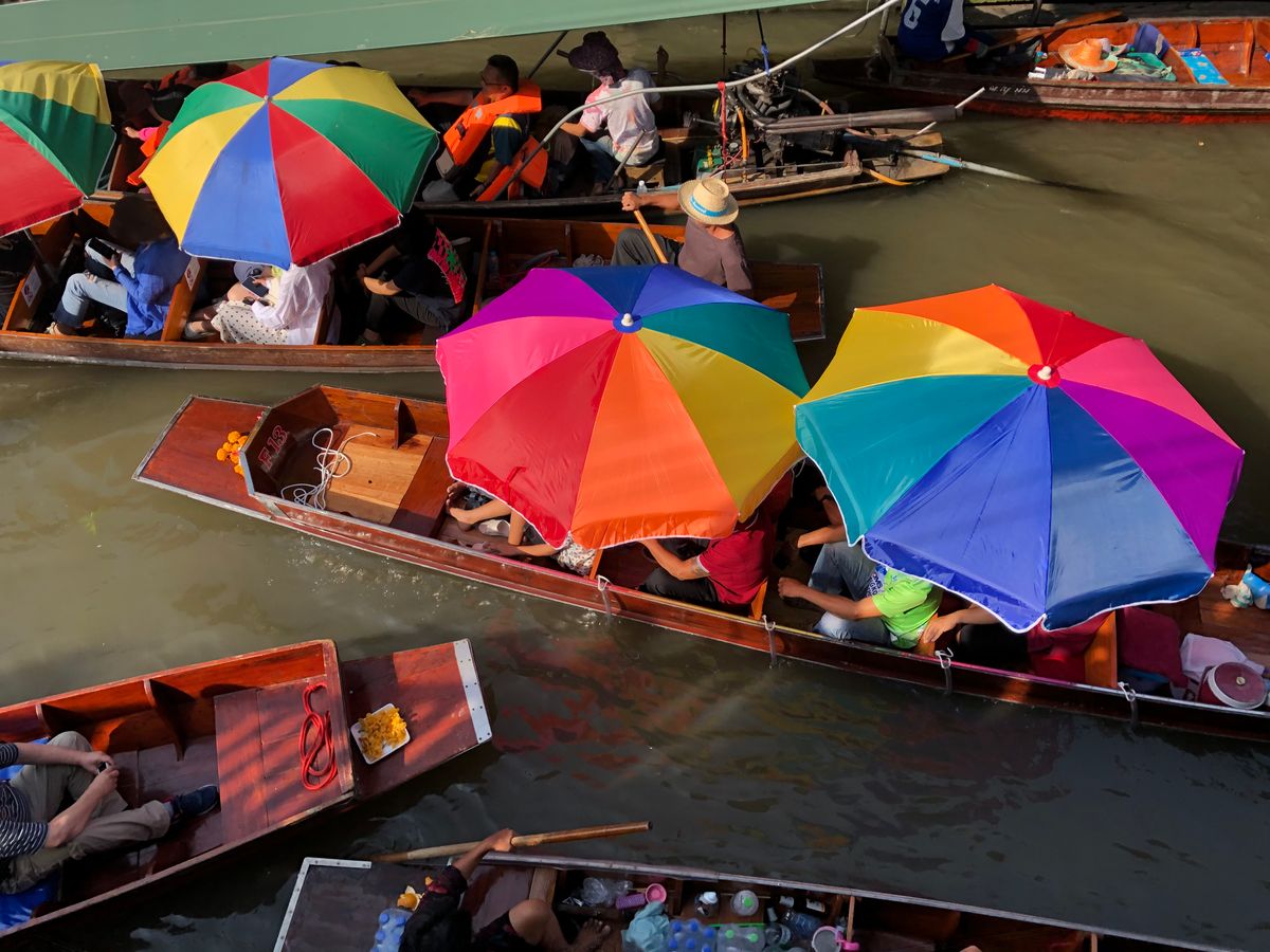 メインのメークロン線路市場も水上マーケットも、まるでテーマパークです。