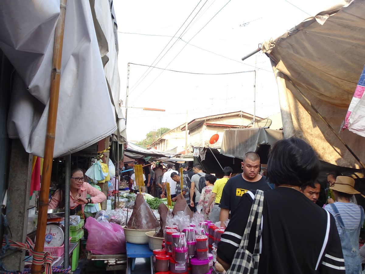 線路市場は観光客のみならず、地元民にも重宝されているようで、生活感があり、また販売している商品もとても興味深い物がありました。私は家族3人でドリアンを2パック購入してその場で食べました。少し高価に思いましたが、本場のタイで食べるドリアンは、とても甘くて美味しいドリアンでした。とても堪能しました。