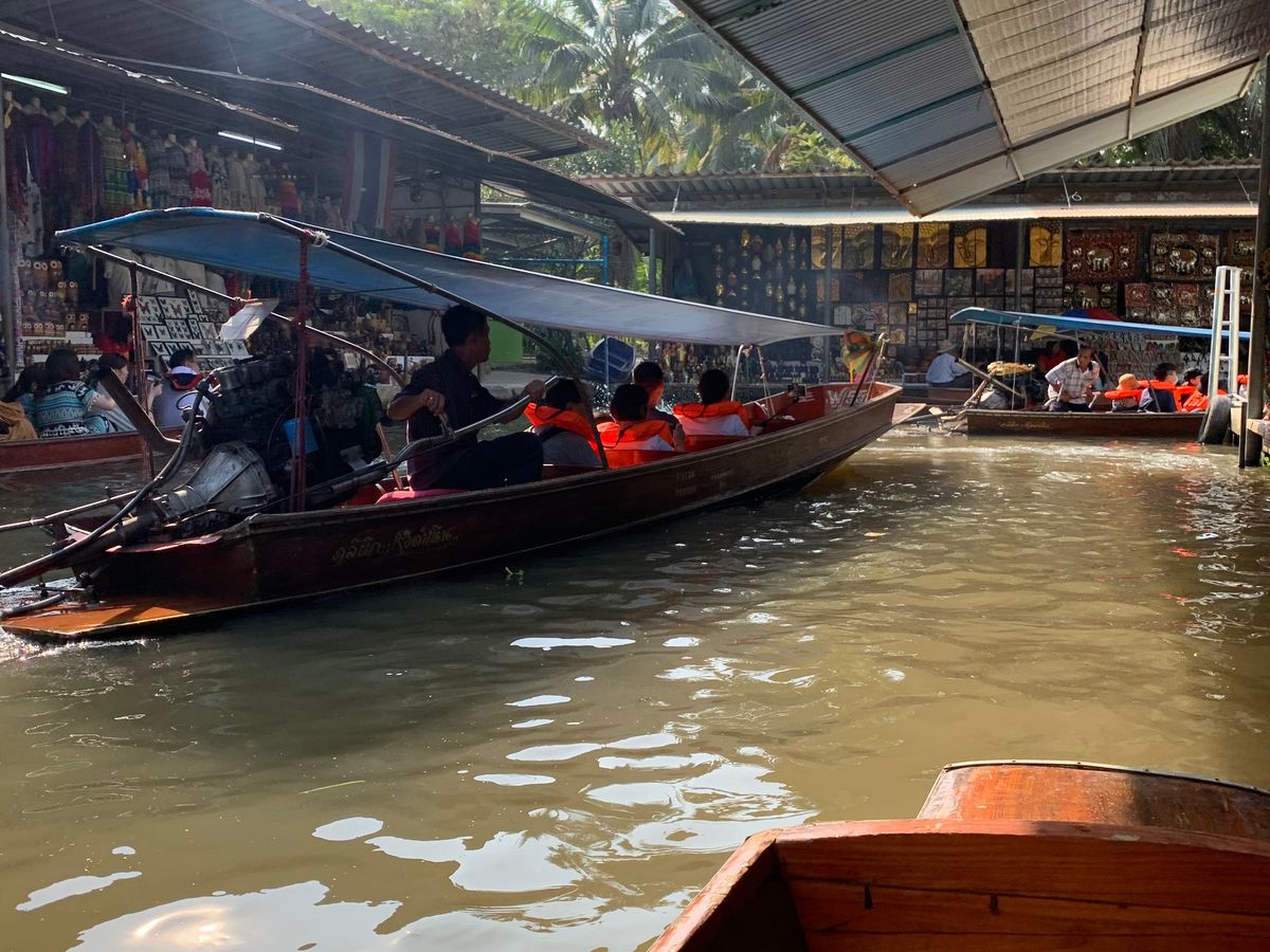 水上マーケットは手漕ぎボートよりモーターボートが面白かった。すごいスピード感!