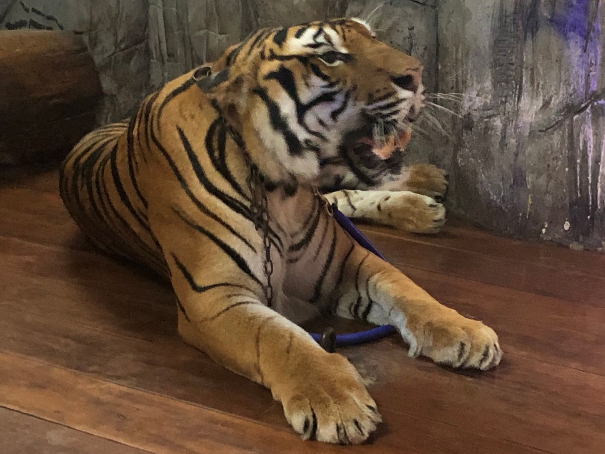 また、象乗り会場には毛並みの良い立派な虎がいて写真を撮れるサービス(有料)があったのですが人気があるようで並んでいましたなのでのぞいてみて下さい。