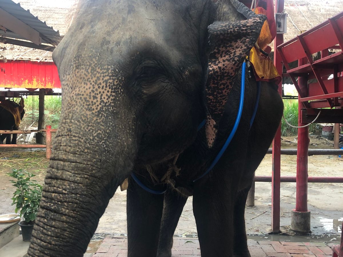 以前はアユタヤのみ行きましたが、象に乗れたり水上マーケット、メークロン線路市場にも行けるツアーがあったので参加しました