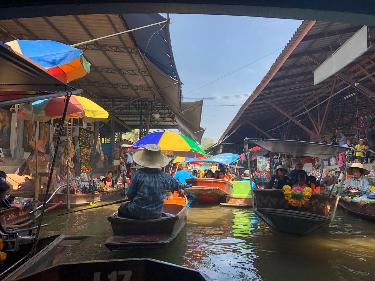 ココナッツファームの見学で美味しいココナッツのお菓子(美味しい!)があったり、水上マーケットで船に乗って楽しんだり、象に乗ってはしゃいだり…テレビで話題のメークロン線路市場に電車に乗りながら駅に入っていくことを特等席で体感できるのはツアーじゃないと絶対出来ない(なぜなら少し郊外から乗っていくから自力は難しいかな…)