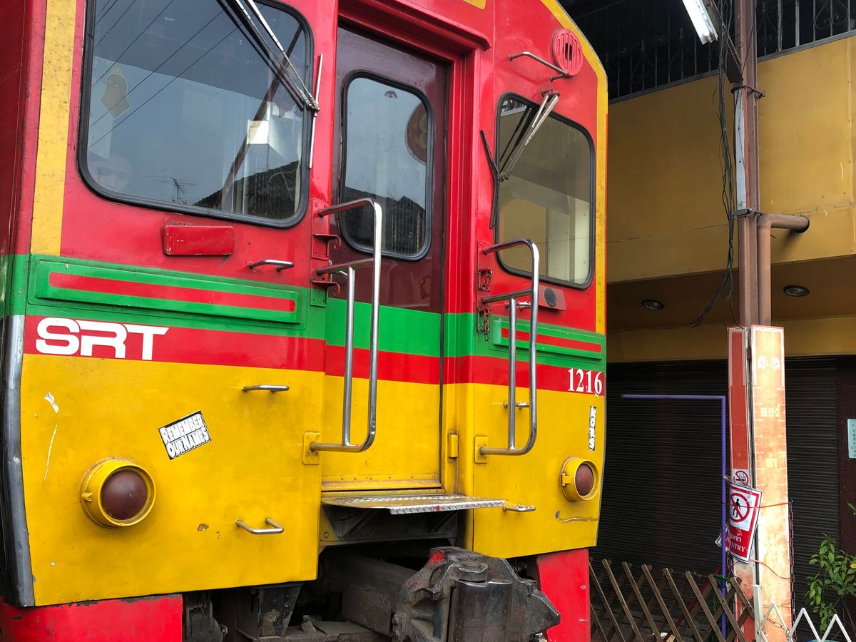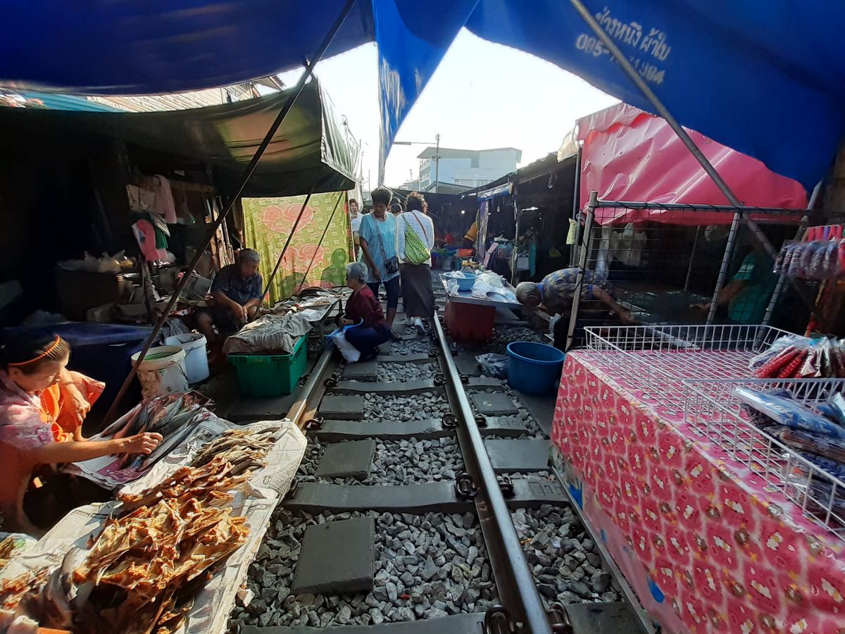 日曜ということもあり、渋滞はあまりなく1時間ほどでメークロン線路市場に到着。そこから1時間ほど自由時間があったので、線路沿いの狭い市場を散策しました。8時半に電車が通過。もう人混みがすごい!!!写真撮影どころじゃないです。ガイドさんの足も速くて、人混みの中ついていくのが精一杯でした。