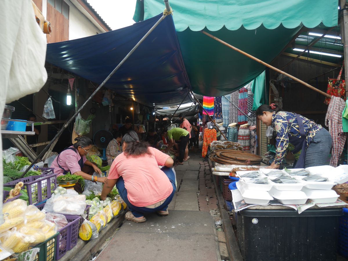 線路市場は観光客でごった返していて、窮屈だった。川沿いの終着駅だったので、ここから水路交易がおこなわれた歴史を推測した。バンコクから離れているのにこんなに人が集まり、商売ができることが不思議だった。