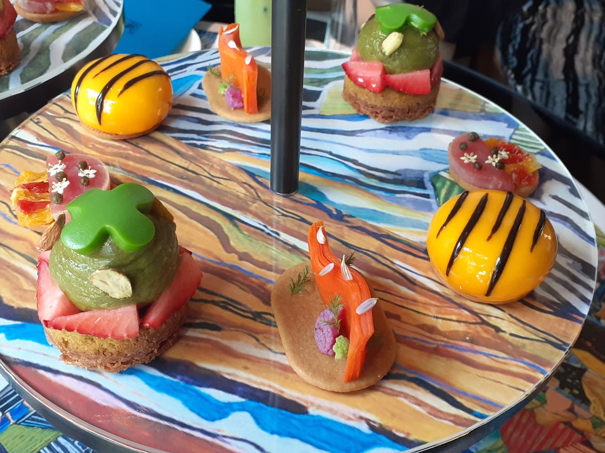 ウエスタンスタイルのアフタヌーンティーを注文しましたが、それがとても可愛かったです。本型のケースから、ケーキたちが出てきて可愛すぎました。ケーキもどれも一つ一つ手がこんでいる味で贅沢でした。スコーンも美味しかったです。マンゴー味のスコーンは、マンゴーがごろごろ入っていました、、、!
