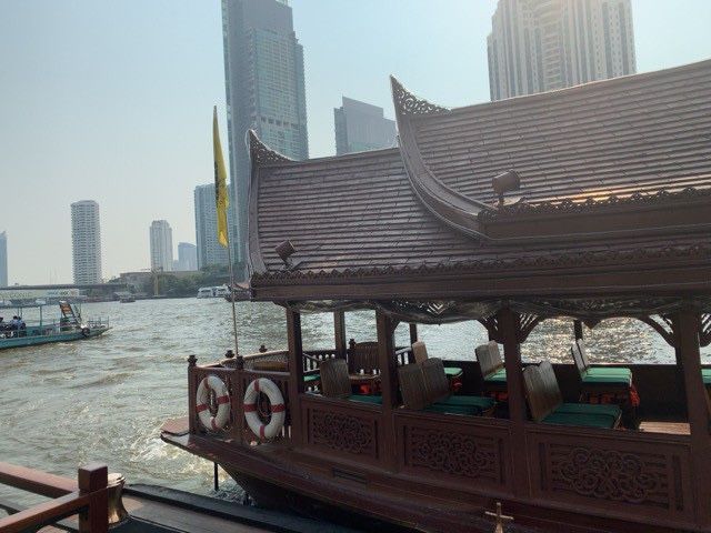 BTSサパーンタクシン駅からチャオプラヤ川を専用の船で。