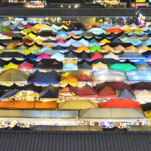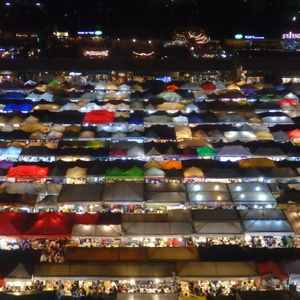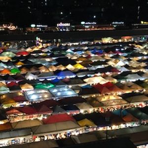 ピンクガネーシャは有名ですが、なんでもありの寺の感じは、個人的にはあまり好みではなかったです。鉄道夜市ラチャダーが見える立体駐車場で現地解散になります。地下鉄駅まで、週末のため大混雑でした。