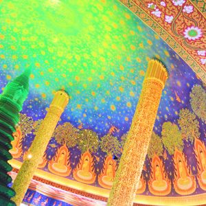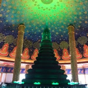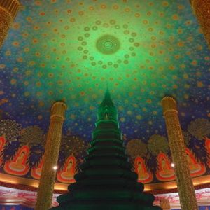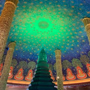 ワットパクナムは、天井がエメラルド色でキラキラしており、見入ってしまいました。あまり人もおらず、ゆっくり見学することができました。