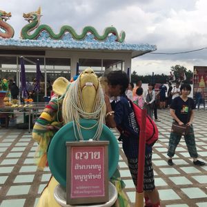 夫婦で参加しました。ワットソートンは、信仰深いタイの方が多く訪れる場所ということで、平日にも関わらず賑わっていました(日本の観光客は見当たりませんでした)。ガイドさんの案内で、より理解が深まりました。ピンクガネーシャがある場所は、タイの方をはじめ、みんなが遊びに来る観光地という感じです。日本のキャラクターの像もありましたし・・・・・バンパコン川の遊覧については、残念ながら、風が強く、雨も降ってきそうということで中止となりました。天候には勝てません。