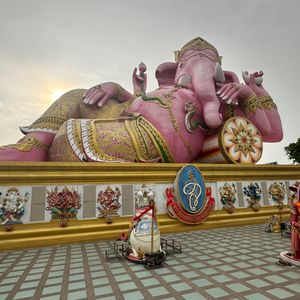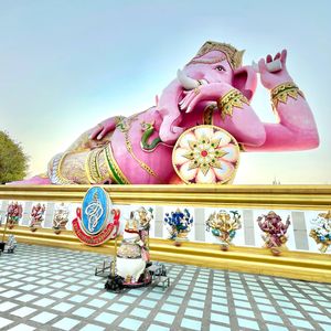 渋滞前に出発できて、お寺に着いてもまだ観光客が集まるには早い時間だったので、人混みにもまれずとてもゆったり見ることができました。お天気がよかったので、青空にピンクガネーシャがよく映えました。ピンクガネーシャの周囲にはヒンズー教や仏教由来の像の他に、なぜか日本でおなじみのマンガやアニメのキャラクターの像も多数あり、なかなかの不思議空間で面白かったです。
