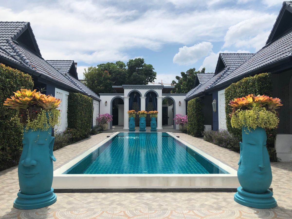 ムクダスパ、大きな道路沿いにございますので、場所からすると騒音が気になりそうな立地ですが、スパの後ろには森が広がり、池もあり、