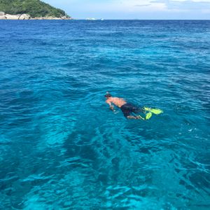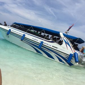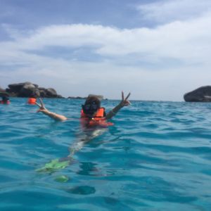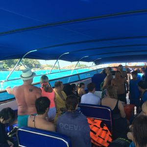 私たちがツアーに出掛けた日はたまたま、波が高かったのと、タイのプリンセスがちょうどいらっしゃる日だったので、行ける島が限られてしまいましたが、その分それぞれの場所で滞在時間を長めにとることができました!出発前には軽食のサービス。スノーケル、フィンの無料貸出(フィンは有料だと思っていたので嬉しかったです☆)また、年末だったのでクリスマス抽選会がありTシャツをゲットしました^^ボート内でもジュースやお菓子のサービス☆スピードボートはすごく揺れましたが、サービス満点でした!ツアーは英語でしたが、ガイドさんの英語は聞き取りやすかったし、何度も説明してくれたので心配なしでした♪海は透明度抜群で、魚も間近でみることができました。気持ちがよくてずっと海で漂っていたくなるくらい・・・♥期間限定ということで、申し込んでみましたが行って正解でした。天気にも恵まれてよかった!