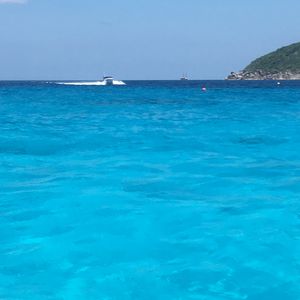 宿泊地のパトンから送迎車で40分くらいの港で,ガイドのタケシさんとハルキさんと合流です。そこからボートで1時間ちょっとでラチャヤイ島です。