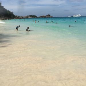 年末だったからかも知れませんが、スピードボートはかなり混み合ってました。約1時間半で1つ目の島へ到着。No.5でシュノーケルを約40分ほど楽しみました。透明度がかなり高いので下まではっきり見えました。シュノーケルの後はNo.4へ。ここで1泊ツアー参加の人達は泊まりの受付の為に別行動になりました。No.4はビーチがとてもきれいでした。パウダーサンドと透明度の高い海は今回まわった島の中で1番だったと思います。ここで昼食を頂きました。昼食はビュッフェ形式でパスタや肉などがありました。ここのツアー会社はアイスクリームやジュースなどもありました。昼食後は写真を撮ったり、ビーチでのんびりしている人が多かったです。