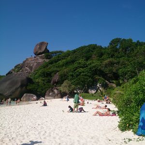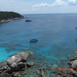 次にNo.9でシュノーケルをしました。シュノーケルをしない人は先に次のビーチに連れて行ってもらってました。No.9もきれいな海でシュノーケルを楽しみました。最後にNo.8へ上陸しました。ビューポイントがあったので登ろうと思いましたが、人が多すぎて登ることができませんでした。登る時間があれば登りたかったです。今回は4つの島を回りましたが、時間があれば全部回ってみたいと思いました。また、想像以上に海がキレイだったので、次回はダイビングで回りたいと思いました。プーケットから近いコーラル島、カイ島、ピピ島などもダイビングやシュノーケルをしたことがありますが、海の透明度はシミランが一番です。乾季で時間があればぜひシミランへ足を延ばす事をおすすめします。