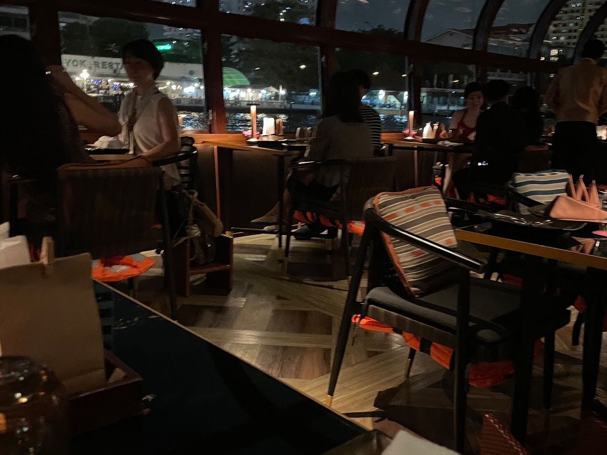 3年前に夫婦で年越しディナークルーズに参加しました。今回は友人多数でゴルフ三昧の旅行でしたが、急遽駄目もとでディナークルーズを前日に申込みましたが、コロナの影響なのか予約が取れました。当日はそんなに混んでいないと思ってましたが、大勢の人がいて圧倒されました。クルーズの食事は3年前とそんなに変わってませんでしたし、船から見る夜景も綺麗でした。雰囲気も良く是非バンコク旅行にはお薦めです。