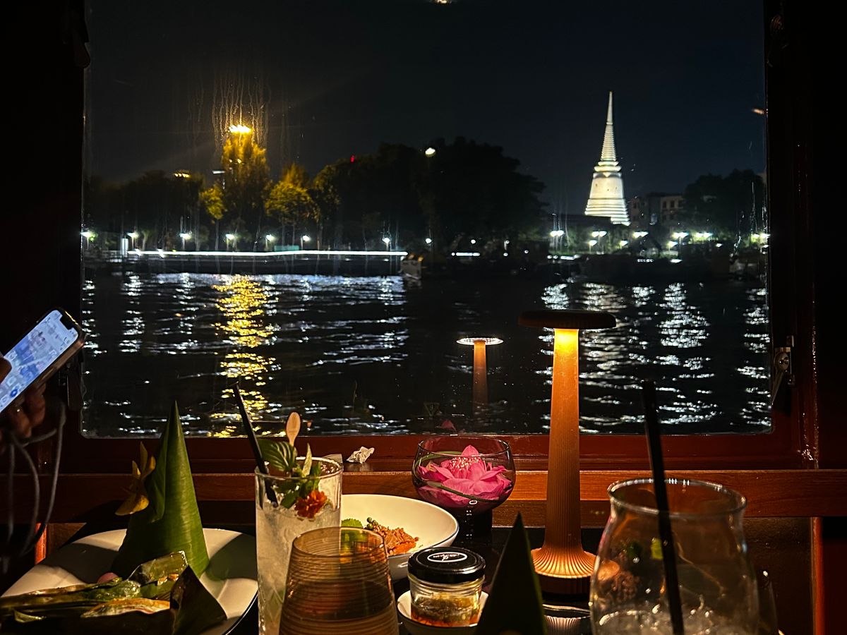 チャオプラヤー川を渡る夜風で暑くもなく、ワットアルンや王宮のライトアップがより綺麗に見えてとてもよかったです。