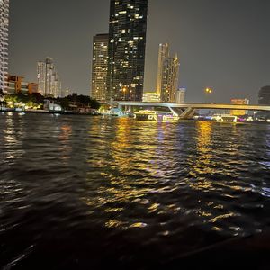 チャオプラヤ川も夜に見ると少し景色が違って見えます。ライトアップされたラマ8世橋やワットアルンなどもとてもきれいです。