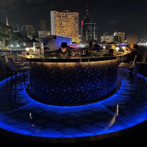 デッキのバーカウンターは夜の雰囲気に合ってて素敵でした川辺の寺院などのライトアップを見ながらゆったりと過ごすの最高に良かった