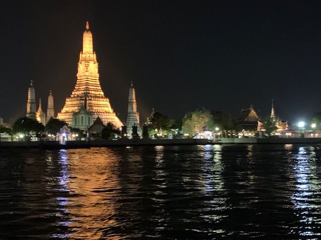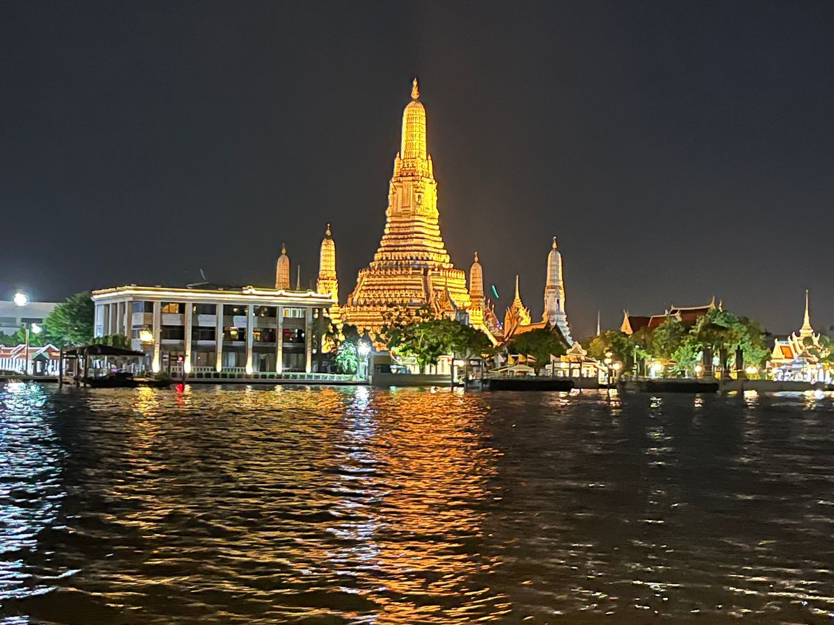川の水位が高く端の下を通れなかったので、ワットポーやワットアルンのライトアップは見られませんでした。こればかりは運かと思います。