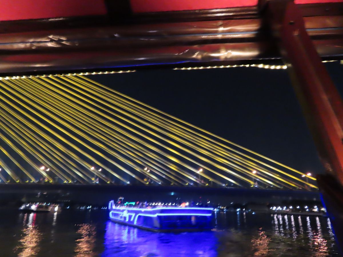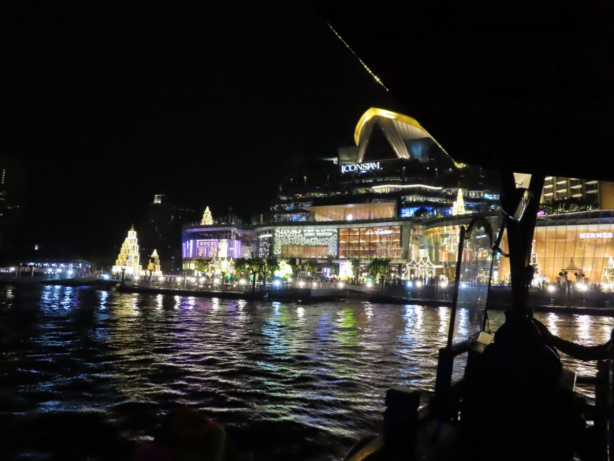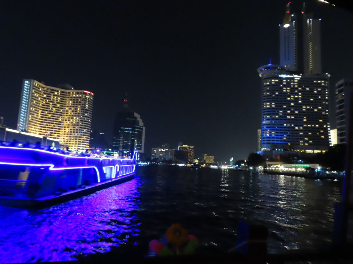 隅田川やお台場沖の花火鑑賞ほどではないけれど、チャオプラヤ川でハッピーニューイヤーの花火を見られるというプランが面白い。食事の味もサービスも充実していて良かった。唯一の欠点は集合や乗船の案内が不足していること。将棋倒しになるのではないかというくらいので人混みで、予定時間を過ぎてもどうしていいかわからずひたすら待っているいらだちの状況は周りの人も皆同じでした。