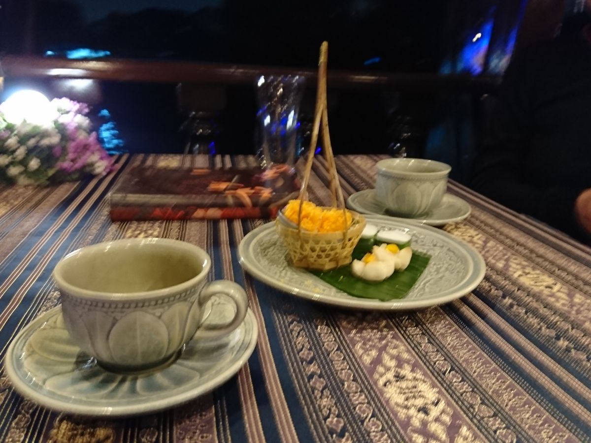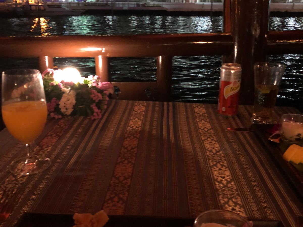 アッパーデッキで眺めもよく、5回目のタイにして初めて夜のワットアルンを存分眺めました。船内も賑やかすぎることなく、それでも後半には、おとなしそうだった若いウエイターが豹変?最高でした。