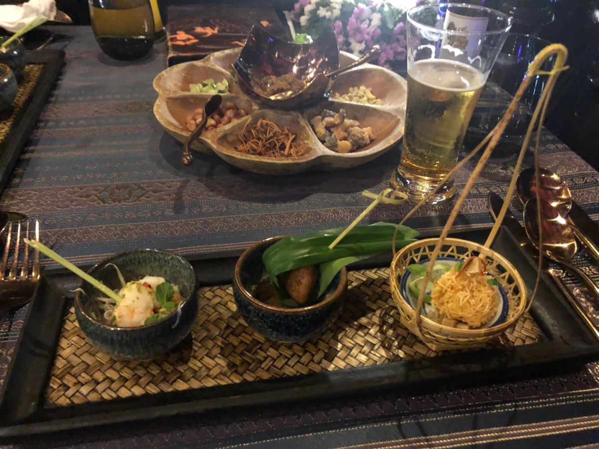 昼に見た時とは違い、船上から見る寺院はライトアップされ、美しく神秘的な光景でした。食事はビュッフェスタイルで、アルコールは別ですが、食事の品数も多く、私たち日本人に合う味付けで非常に満足な内容でした。