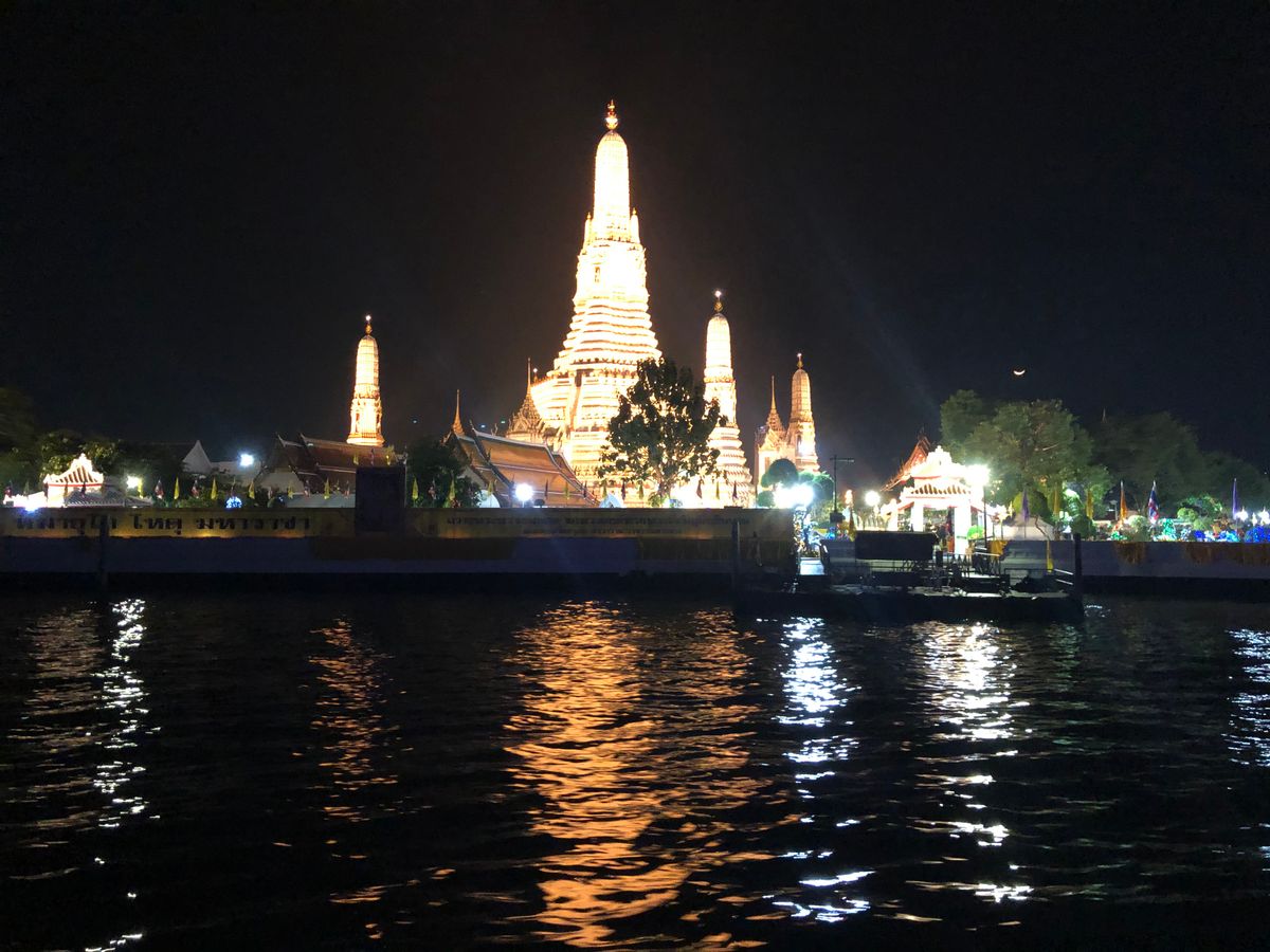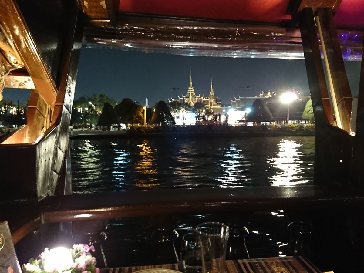 チャオプラ川沿いがライトアップされてとてもきれいでした。入船の際も民族衣装の方が出迎えてくれて記念写真を撮ることができたり、音楽で出迎えてくれてとても高揚しました。食事の内容はいまいちでしたが、見事なライトアップをぜひ見てみて下さい。