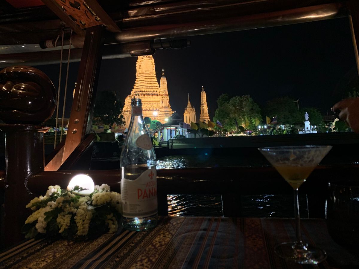 息子と2人での参加でしたが、かなり喜んでくれました!なかなか子供の口に合う食事が難しい中とても喜んでくれたからです。そして子供を連れての3大寺院巡りは過酷だなと思い、『そうだ3大寺院が一気に外観ライトアップで見れるならそっちの方がいいのでは?』という目論見は大正解でした!船着場だけでもいろんなショップがあり自由時間があるのでショッピングも楽しめます。まず記念撮影してもらい乗船!橋桁をくくる時はダイナミックでテンション上がります!として派手目なライティングがいかにもタイらしく。船内で舞踊やバンド演奏も披露してくれます。気になる食事ですが、まず腹痛を心配している方!ここのビュッフェは衛生的でお腹の弱い僕でも美味しくてガツガツ食べましたが全く大丈夫でした。最後はホテルまでしっかりと送迎してくださせいます。