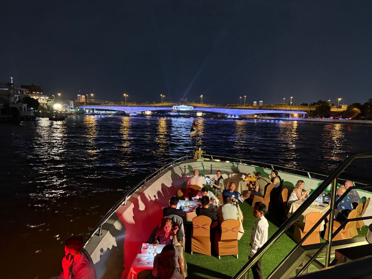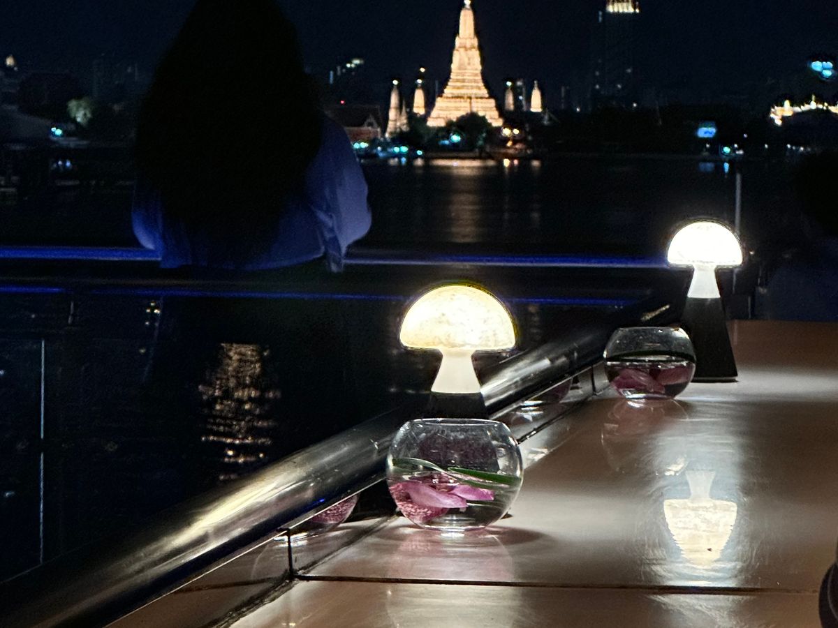 さすが5つ星ホテルが運行するクルーザー、アイコンサイアム噴水ショーに始まりカクテルタイムからゆったりとしたディナータイム、素晴らしいリバーサイドの夜景シーン、接客も満点で素敵な思い出♡