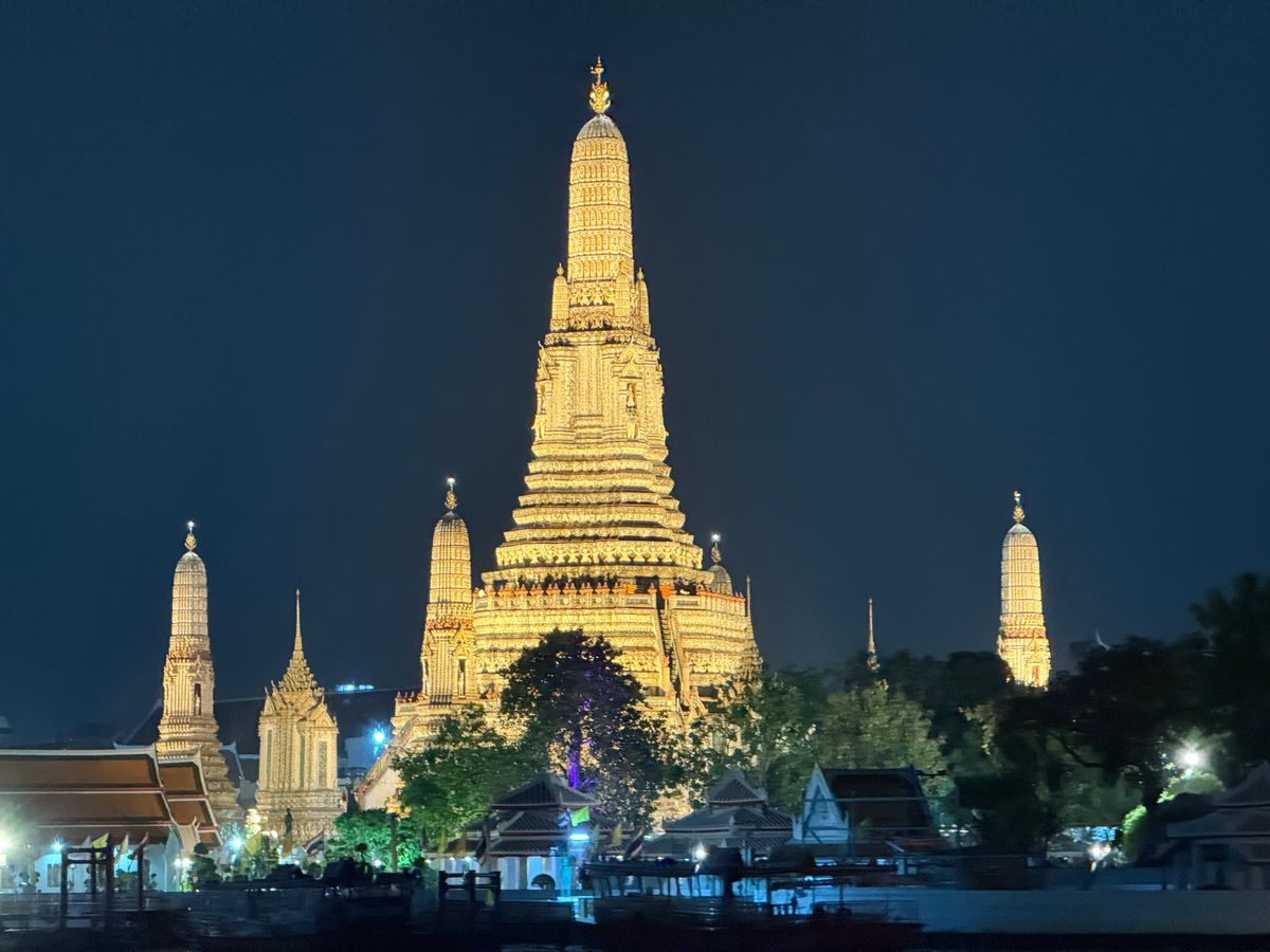 ライトアップされたワットやチャオプラヤー川沿いの風景も綺麗でした。