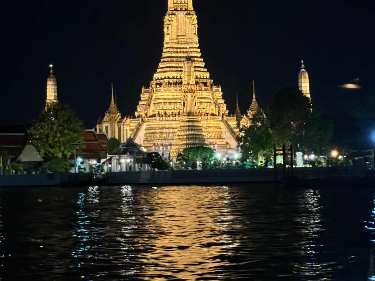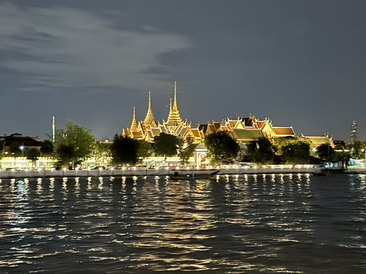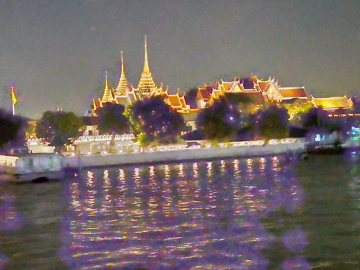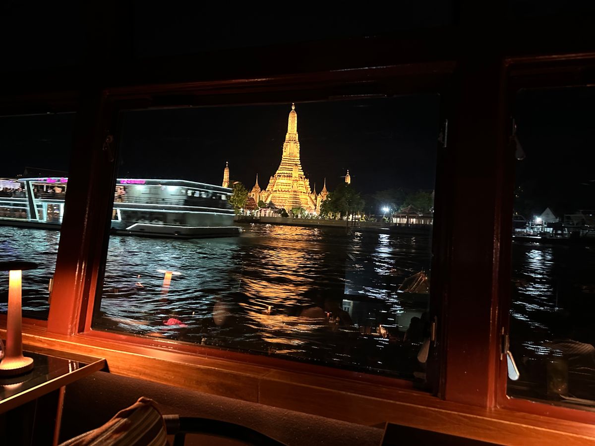 クルーズは、ライトアップされたワットポーや王宮などの歴史的建造物の前を航行し、良かったです。