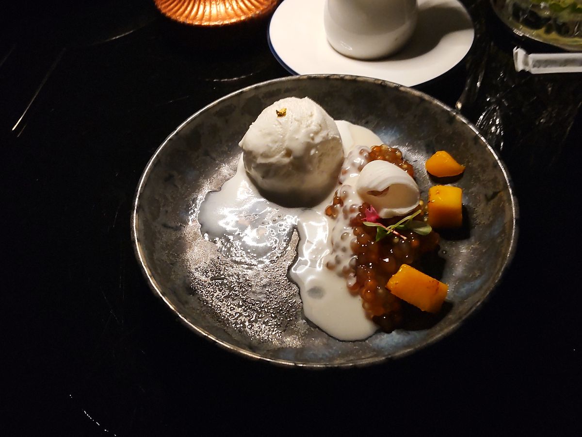 ディナー後半、船室から,デッキに上がって夜景を楽しんでいたところ,スタッフから「デザートは,もう済んだ?」と聞かれ、「まだ」と答えたら、デッキまで、デザートを持って来てくれました。