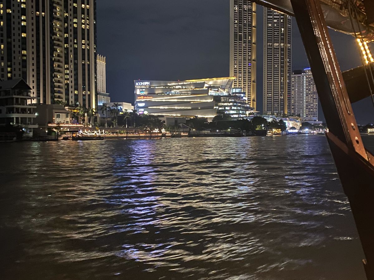 事前チェックインではアレルギーの確認、料理の変更も対応してくれ、とてもスムースでした。船に乗り込むとオープンデッキのソファーでゆっくりとウェルカムドリンクとライトアップされたICONSIAMの景色を楽しみました。各自の好きなタイミングで一階のレストランフロアーへ移り、ディナーを始めました。食事はバンヤンツリーの運営だけあってとても満足する内容でした。詳しくは紹介しませんので是非ご自身の舌で確認してみて下さい。美味しい食事とチャオプラヤー川沿いの景色を堪能できるクルーズでした。少しお洒落して参加してください。