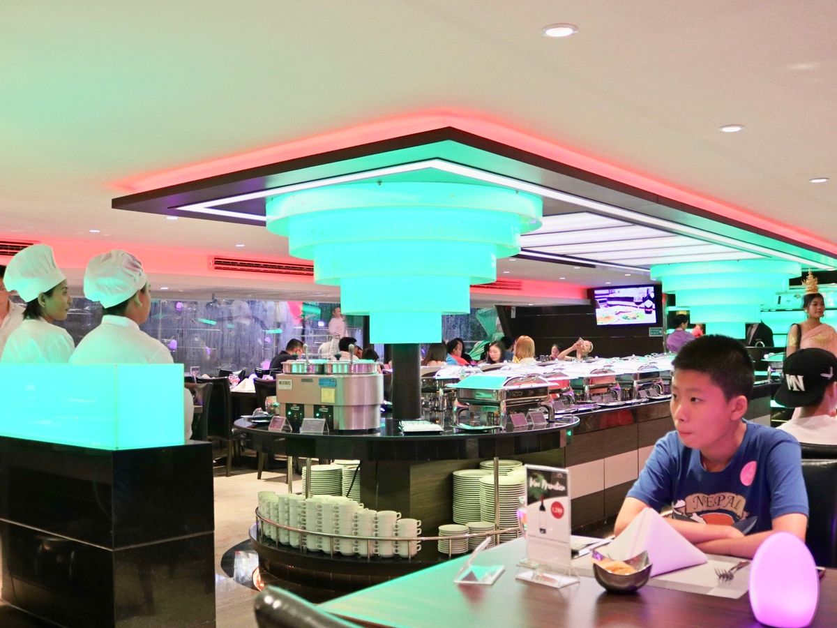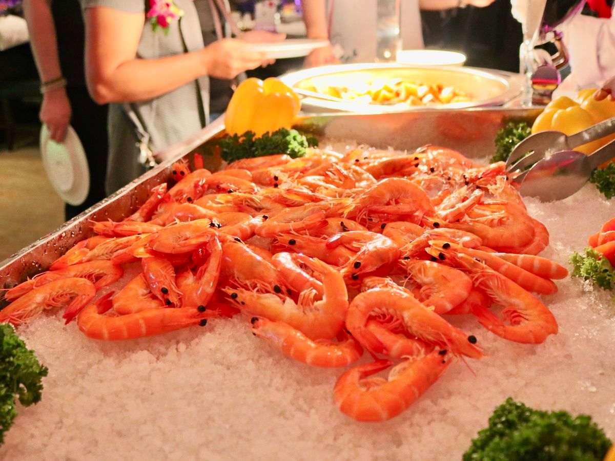 船はとても大きくて華やかです。ブュッフェはインターナショナルとあったけど、カレー系が多かったです。辛いのが苦手なうちの子は、ひたすらエビを食べてました。