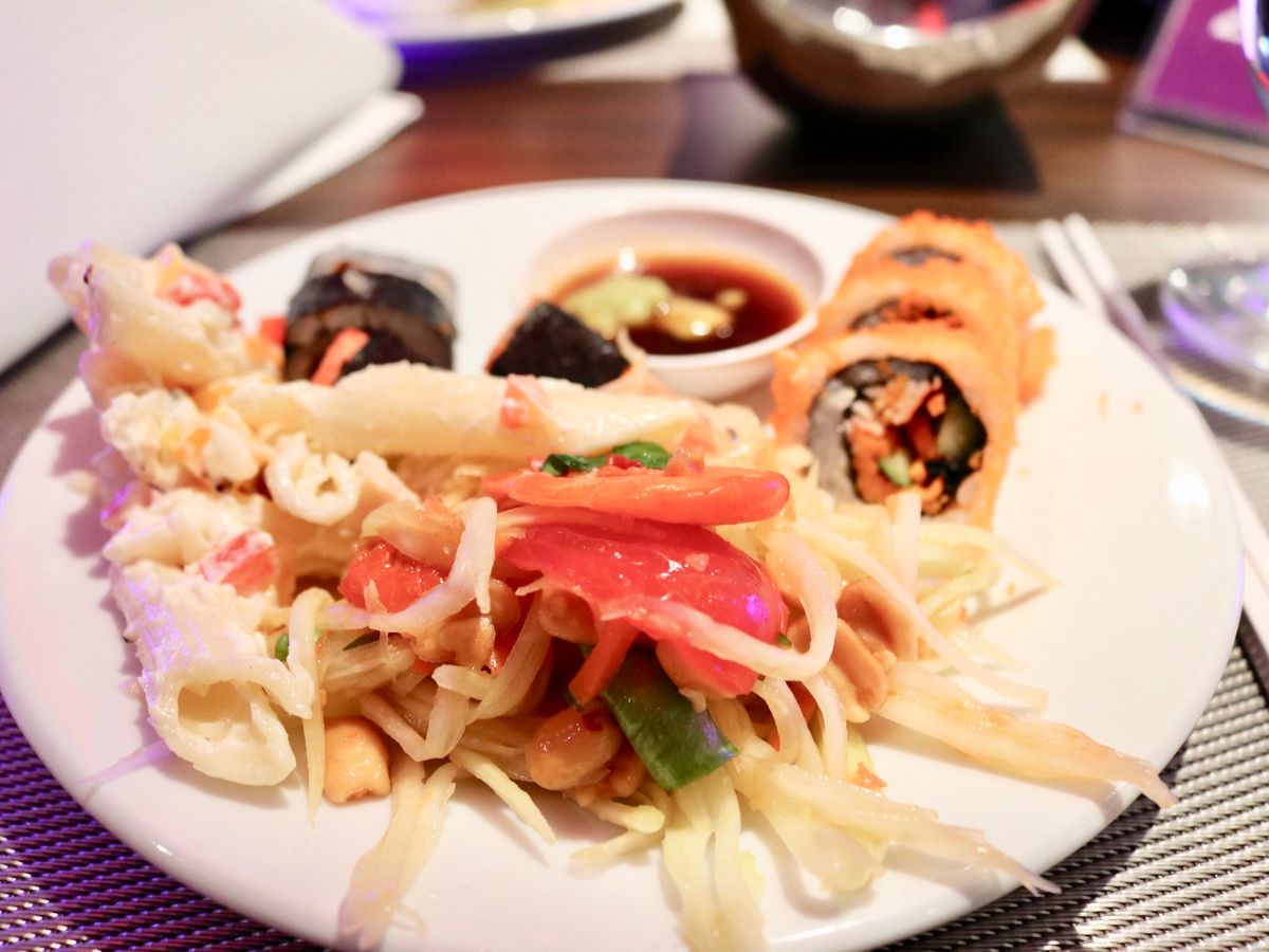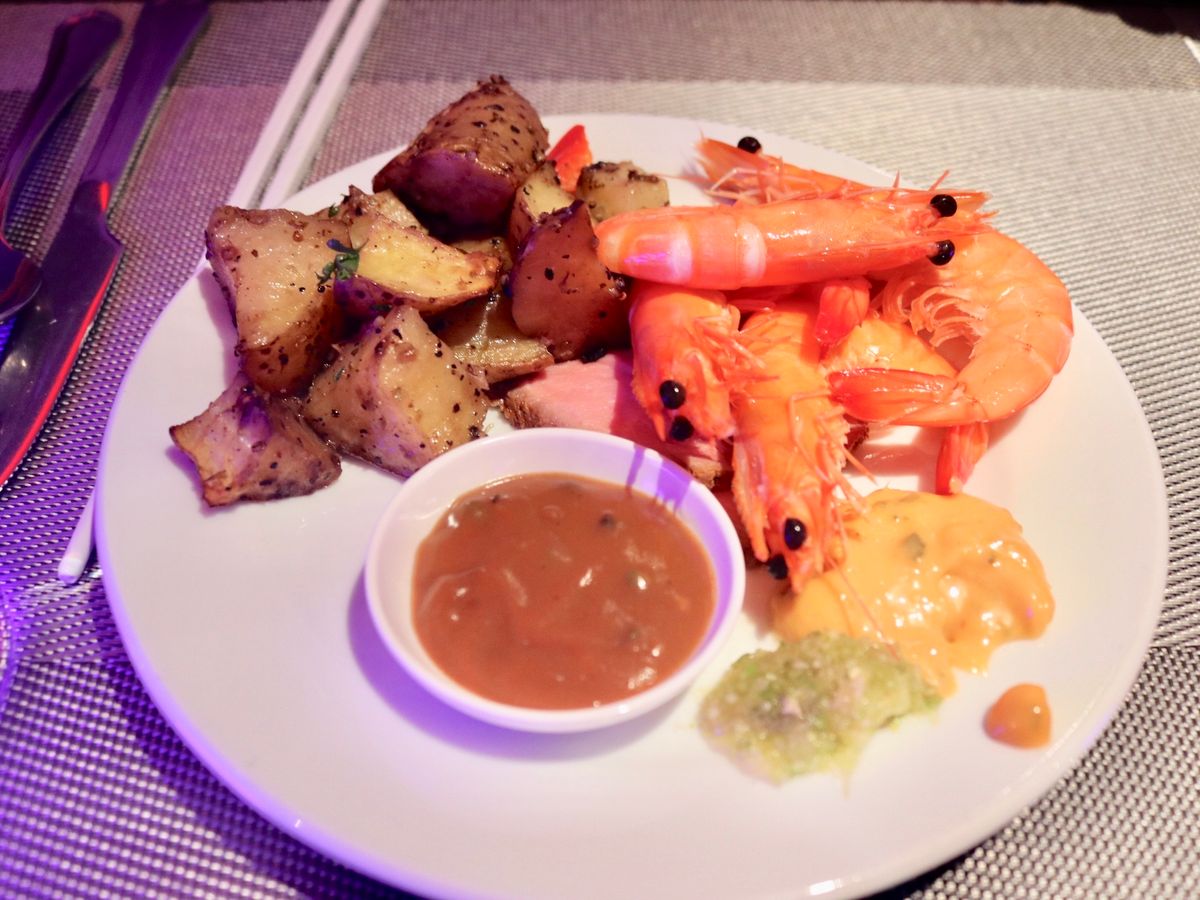乗船前のダンスパフォーマンスがよかっだ。ビュッフェも充実してて満足、早めに取りに行ったからかもしれないけど?