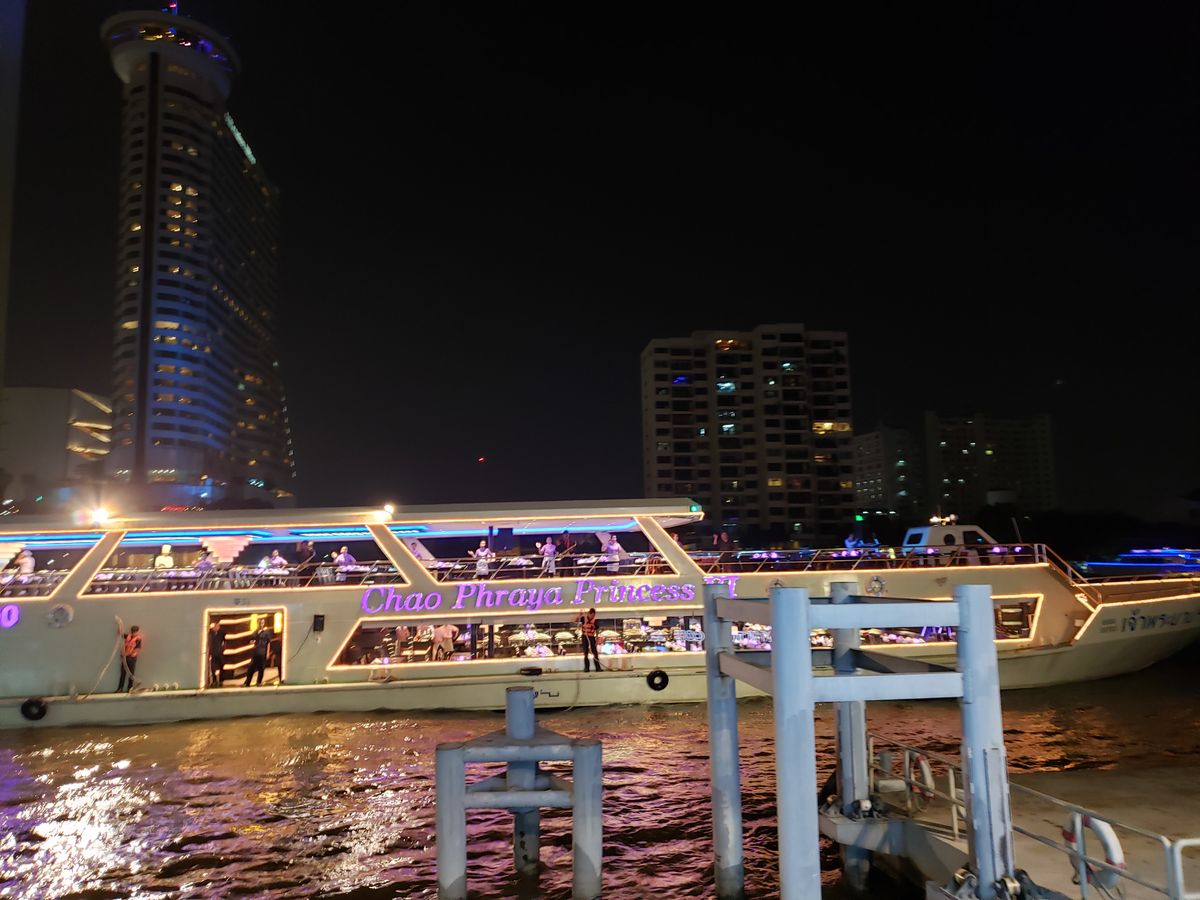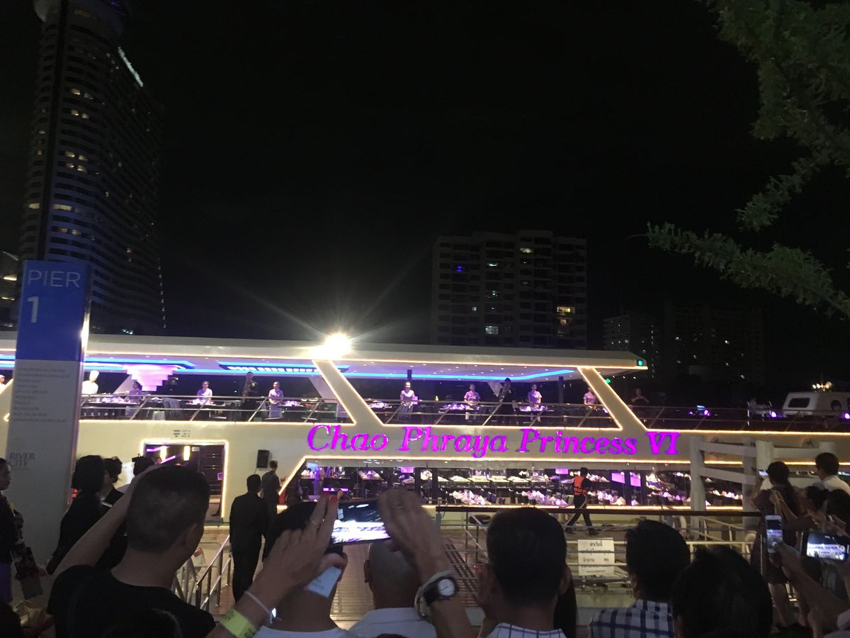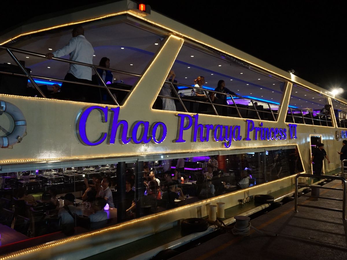 私の乗ったチャオプラヤプリンセス号は日本人が多く落ち着いた感じ、以前乗ったもう少し高い船は白人が多くゲストアーティストも大勢いてディスコ風な感じだったので一長一短な感じです。景色は格別でした。