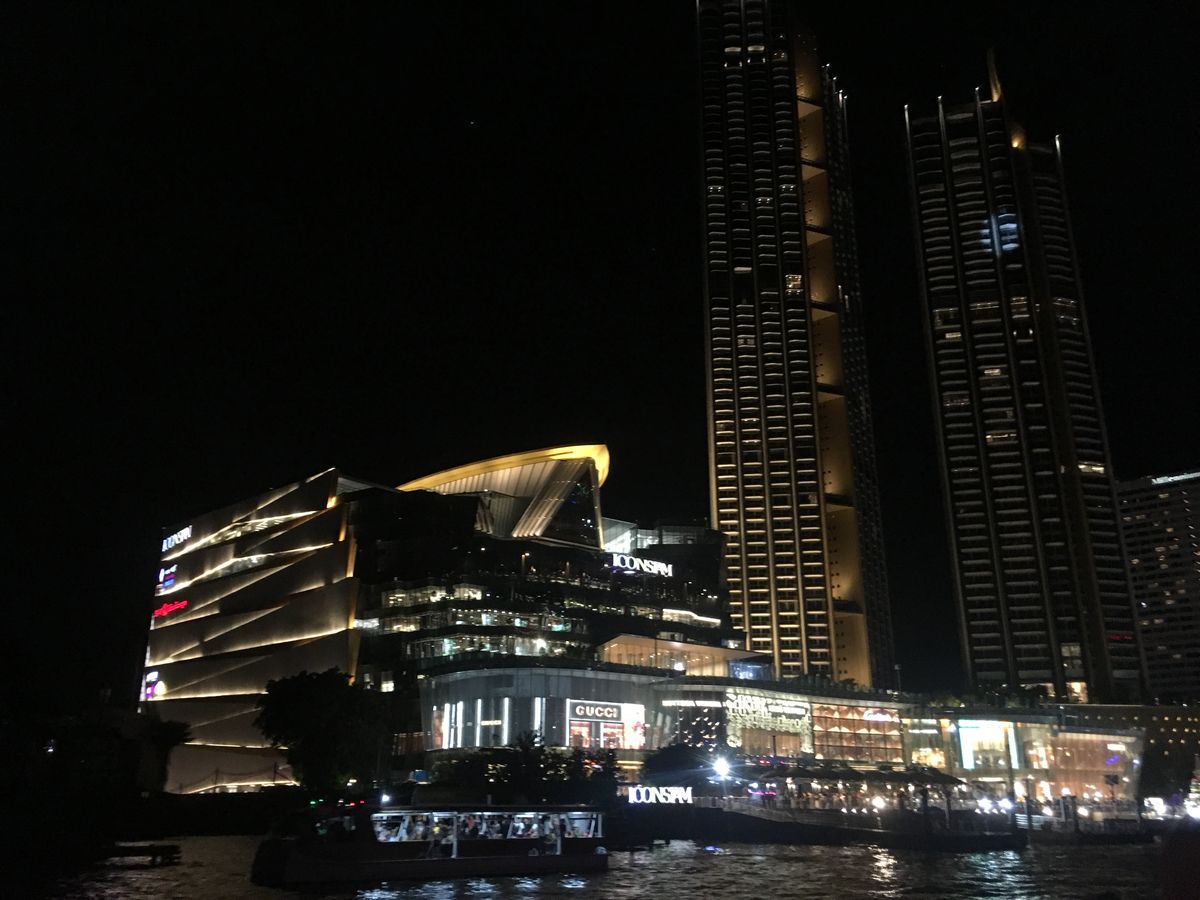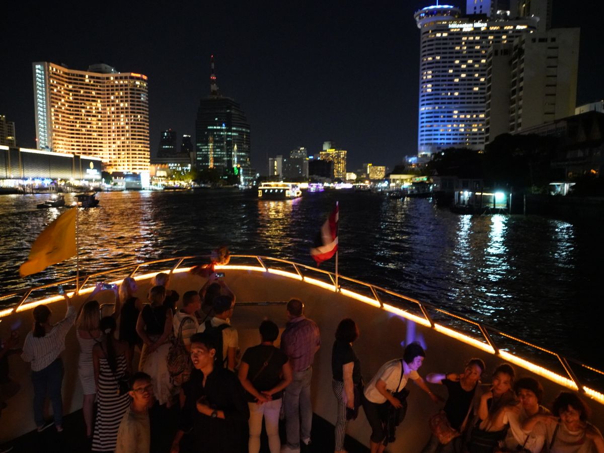 国王の戴冠式と重なっていたので催行やライトアップが心配でしたが無事催行されてよかったです。ブッフェの味はそこそこですがお腹いっぱい食べられます。お料理の関係上なのか近くのテーブルはみな日本人でした。選べるなら二階席がより景色を楽しめると思います。私は一階でしたので窓ガラスで景色を見るためにデッキへ出ました。リバーシティへのアクセスはタクシン駅からボートかタクシーしかありません。行きはボート、帰りはボートの時間が終わっていたのでトゥクトゥクに乗りました。タクシーもトゥクトゥクも高めの運賃を提示してきますので値段交渉のため何台か見送りました。