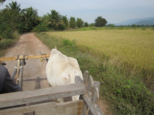 象乗りが楽しそうで、参加しました。最初の朝市は珍しい食材が売られていましたが、買物するほどの物もなく、途中のガソリンスタンドのコンビニのほうが、珍しいスナックなどがありました。牛車は、畑の真ん中をゴトゴトと往復するだけなので、あまり楽しいとは言えませんけど、のんびりと田舎の雰囲気を味わうには良いのかも知れません。