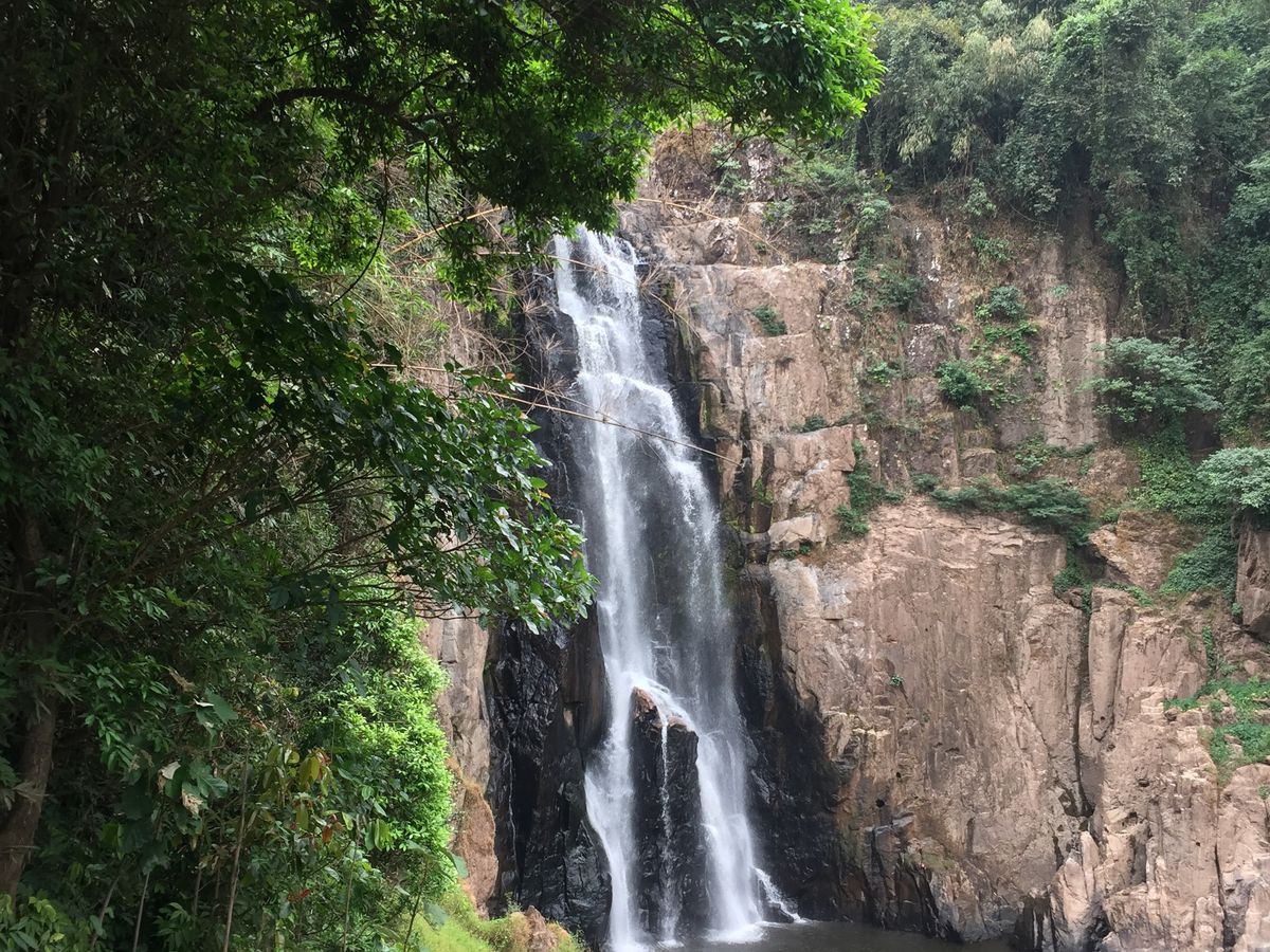 トレッキングは滝の直前に急な下り階段がありますが、それ以外は舗装路で楽々歩けます。あまりトレッキングと構えずとも大丈夫だと思います。それでも1時間も歩くと汗が出て、ガイドさんに渡してもらった水は美味しく感じました。