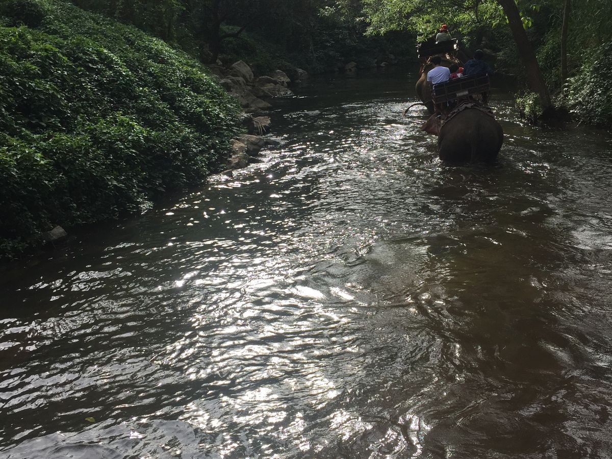 目玉のエレファントトレッキングでは、3人ひと組で象の背中に乗り、森や川のなかを歩くのが迫力ありとても楽しかったです。なかなかない経験なので、オススメです!