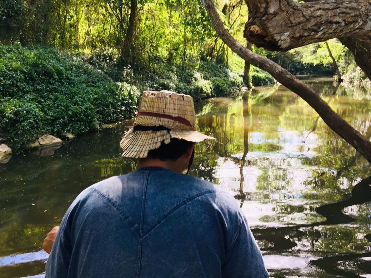 川の中にザブンザブンと入る時はとてもスリリングでした。張り出した木々を手でよけながら、落とされはしないか、私達もバランスを取る事に心掛けました。