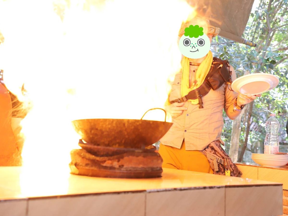 また、ランチでは空芯菜を炒めるのにちょっとしたファイヤーパフォーマンスをしてくれて、賑わいました^^