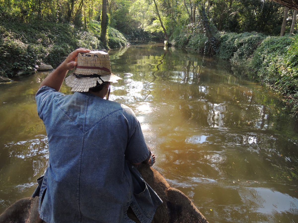象の足跡しかないジャングルに分け入り、そこそこの水深の川をジャブジャブ進み、オマケに象使いが乗る象の首に直接象乗せてくれるというサプライズ付き。