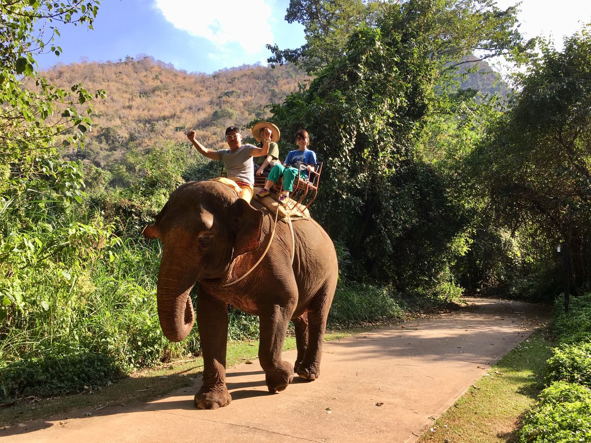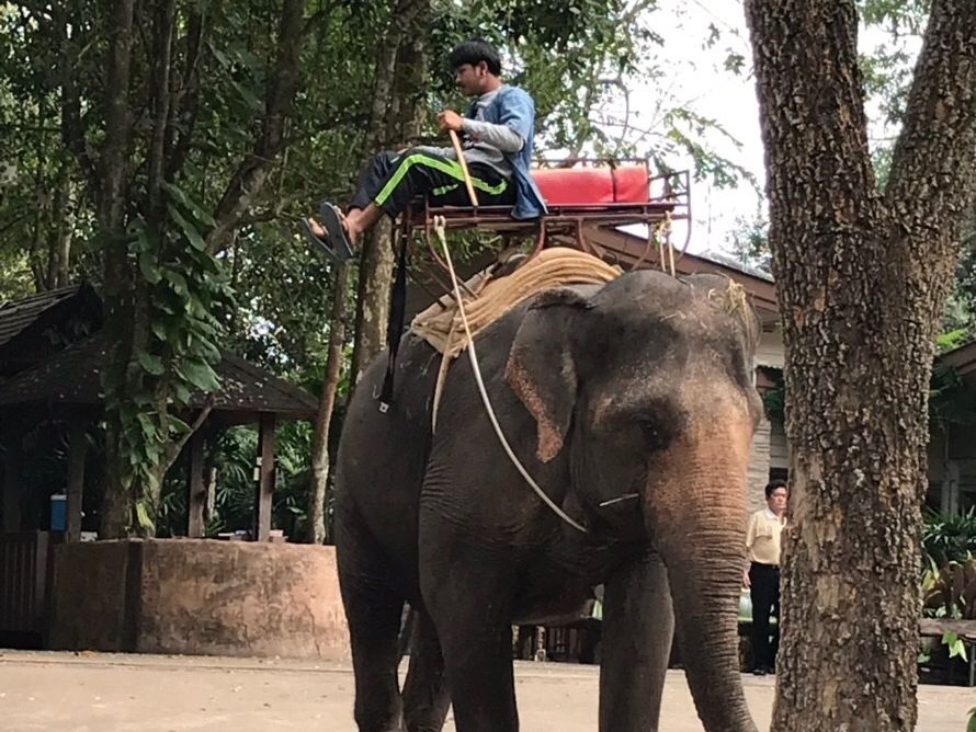 ホテルに迎えに来てもらい、出発!まずはローカルマーケットへ。前日に行ったウィークエンドマーケットとは違い食材がメインでいかにも地元民のものといった感じ。豚や魚、カエルなどびっくりするものも売られていました。少し移動して牛車で散策(^^)麦わら帽子を被せてもらいお散歩〜のどかです。果樹園で南国フルーツの木を見せてもらってみんなでランチ。自分で料理出来たりとエンターテイメントもありますよ。そのあとのトレッキングは長ーい階段を上り下り、、体力勝負です!そして、私のメインの像乗り体験へ。像さんの背中に乗ることはわかってはいたのですが、思ったより乗る時怖い!揺れる!坂道下る!川に入る!でもとっても楽しかったですよ。耳の裏とか背中の毛とか動物園では見れないところが見れました。エサも買ってあげることが出来ます。長い鼻でつまんで持っていかれます。おもしろかったー。こんな至近距離で像に会えることは日本では無いと思います^ ^。帰りは渋滞に巻き込まれて市内に着くのは1時間半くらい遅れましたが、寝ていたので問題はないです(笑)でもタイは渋滞が多いそうなのでどのツアーでも覚悟は必要だと思います。ガイドさんも良い方でカオマンガイのお店を紹介してもらい駅まで案内していただきました。自然いっぱいの楽しいツアーでした。