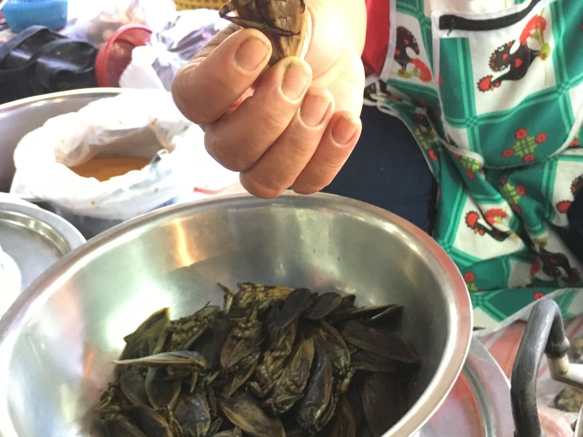 この市場では日本で見るコトの出来ない珍しい野菜の数々や魚、肉の部位、タガメやカエル等などそれはもう珍しいものばかりでした。