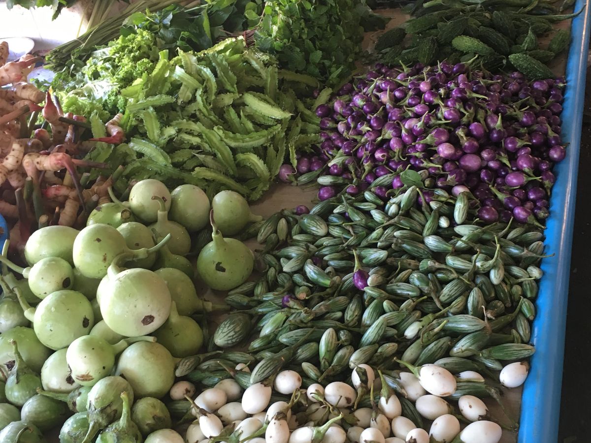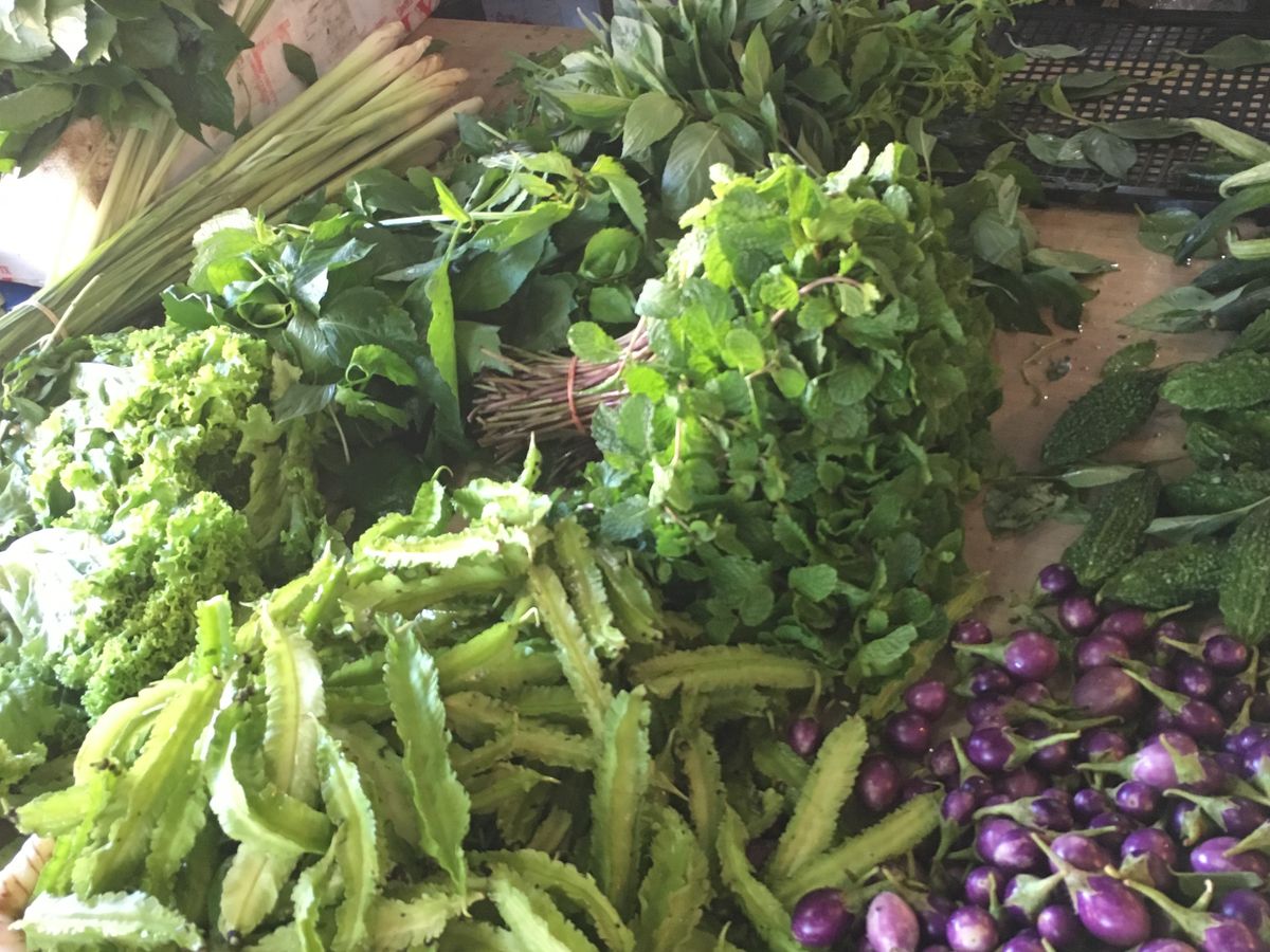 朝市で30分程散策。ローカル市場という事もあり、魚、エビ、卵、初めて見る色鮮やかな香草、スイカやマンゴー、地元の方の生活に触れる事ができました。
