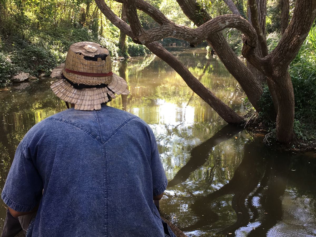 20数年ぶりのタイ❗️前は、旅行会社からバンコクとプーケット島ツアー参加でしたが、2度目とあって、今回は別の体験をしようと考え、また同伴に妹の姪甥も参加の為、子供も飽きないツアーを探そうと飛行機だけ旅行会社で取り、あとは現地ツアーを自分で探す事にしました。現地ツアーを自ら探すのは初めてでしたが、今の世の中ネットという便利な物があり、色々調べた結果、大自然を体感出来るこのツアーに是非参加したい!と参加を決めました。きっと子供も飽きないに違いない!と確信しました。当日は、時間通りにホテル迄迎えに来てくれ、現地へ向かいました。先ずは郊外の市場に到着。ここでは、現地ならではの食材や市場の様子を見学しました。生きた食用蛙が数匹紐でまとまって桶の中にいる姿は、なかなか日本では見れないですね 笑!ココナッツ❗️目の前で切って飲ませてもらいました。いつも食べ物として触れてるイメージとは一味違う味を経験。さて市場の次は、牛車乗り場へ。田舎ならではの籠帽子を借り